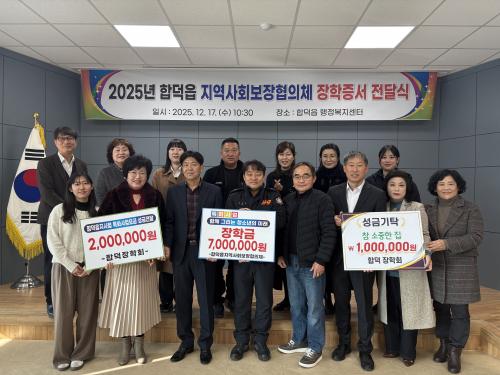 [½Åµ¿¾Æ¹æ¼Û=ÀÌÀçö±âÀÚ] ´çÁø ÇÕ´öÀ¾ Áö¿ª»çȸº¸ÀåÇùÀÇü(°ø°øÀ§¿øÀå ±¸º»Ç×, ¹Î°£À§¿øÀå ½Åµ¿¼±)¿Í ÇÕ´öÀ¾ ÀåÇÐȸ(ȸÀå ½Åµ¿¼±)´Â Áö³­ 17ÀÏ ÇÕ´öÀ¾ ÇàÁ¤º¹Áö¼¾ÅÍ¿¡¼­ Áö¿ª ³» °íµîÇлý 10¸íÀ» ´ë»óÀ¸·Î ÀåÇÐ±Ý Àü´Þ½ÄÀ» °³ÃÖÇß´Ù°í 18ÀÏ ¹àÇû´Ù. À̹ø ÀåÇбÝÀº ÇÕ¡¦