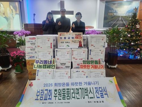[½Åµ¿¾Æ¹æ¼Û ÀºÆò±¸=À̽ŵ¿±âÀÚ] ¼­¿ï ÀºÆò±¸ ½Å»ç1µ¿Àº Áö³­ 7ÀÏ º¸¶÷±³È¸·ÎºÎÅÍ ¡®2026³â µû¶æÇÑ °Ü¿ï³ª±â ÈÄ¿ø ¹°Ç° Àü´Þ½Ä¡¯À» ÅëÇØ ¶ó¸é 70»óÀÚ¸¦ ±âºÎ¹Þ¾Ò´Ù°í ¹àÇû´Ù. º¸¶÷±³È¸´Â ¸Å³â ¾î·Á¿î ÀÌ¿ôÀ» À§ÇÑ ³ª´® Ȱµ¿À» À̾î¿À°í ÀÖÀ¸¸ç, À̹ø¿¡ ±âºÎ¹ÞÀº ¶ó¸é¡¦