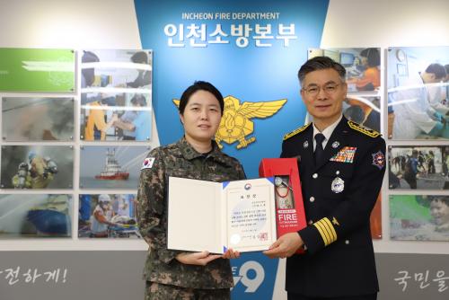 [½Åµ¿¾Æ¹æ¼Û ÀÎõ=À±¹Î½Ä±âÀÚ]¡Û ÀÎõ¼Ò¹æº»ºÎ´Â Áö³­ 16ÀÏ ÀÇÁ¤ °¥µî »óȲ ¼Ó¿¡¼­µµ ±º Çï±â¸¦ Ȱ¿ëÇÑ ÀÀ±ÞȯÀÚ Ç×°øÀ̼ۿ¡ ±â¿©ÇÑ °ø·Î¸¦ ÀÎÁ¤ÇØ, ±¹±ºÀǹ«»ç·ÉºÎ ¼Ò¼Ó ³²¼ÒÀ± ¼Ò·É¿¡°Ô ¼Ò¹æÃ»Àå ǥâÀ» Àü¼öÇß´Ù°í ¹àÇû´Ù. ¡Û ³²¼ÒÀ± ¼Ò·ÉÀº ÀÇ·á °ø¹éÀÌ ¿ì·ÁµÇ´ø¡¦
