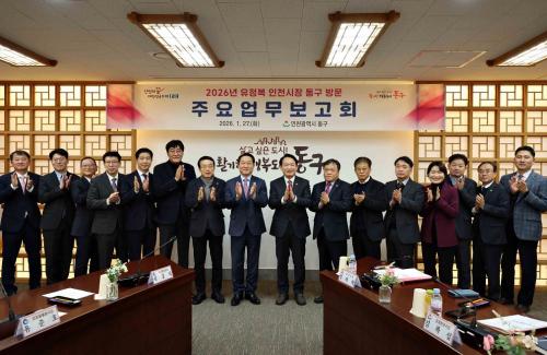 [½Åµ¿¾Æ¹æ¼Û ÀÎõ=À±¹Î½Ä±âÀÚ]ÀÎõ µ¿±¸(±¸Ã»Àå ±èÂùÁø)´Â Áö³­ 27ÀÏ À¯Á¤º¹ ÀÎõ½ÃÀåÀÌ µ¿±¸¸¦ ¹æ¹®ÇØ ±â°ü Çö¾È ¹× °ÇÀÇ»çÇ×À» ûÃëÇϰí, 2026³â ½ÃÁ¤ ÁÖ¿äÁ¤Ã¥À» ¼³¸íÇÏ´Â »ý»ýÅåÅå ¾ÖÀÎ(äñìÒ)¼ÒÅëÀÇ ½Ã°£À» ÅëÇØ ±¸¹Îµé°ú ´ëÈ­ÀÇ ½Ã°£À» °¡Á³´Ù°í ¹àÇû´Ù. À̹ø¡¦