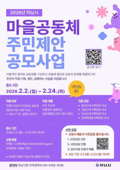 [½Åµ¿¾Æ¹æ¼Û Çϳ²½Ã=À̽ŵ¿±âÀÚ] Çϳ²½Ã´Â ¿À´Â 2¿ù 24ÀϱîÁö ¡®2026³â Çϳ²½Ã ¸¶À»°øµ¿Ã¼ ÁÖ¹ÎÁ¦¾È °ø¸ð»ç¾÷¡¯¿¡ Âü¿©ÇÒ ÁֹθðÀÓ °øµ¿Ã¼¸¦ ¸ðÁýÇÑ´Ù. À̹ø °ø¸ð»ç¾÷Àº °°Àº Áö¿ª¿¡ °ÅÁÖÇÏ´Â ÁֹεéÀÌ ÀÚ¹ßÀûÀ¸·Î ¸ð¿© ¸¶À»¿¡ ÇÊ¿äÇÑ È°µ¿À» Á÷Á¢ ¹ß±¼ÇÏ°í ±âȹ¡¤½Ç¡¦