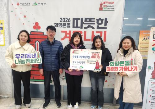 [½Åµ¿¾Æ¹æ¼Û ÀºÆò±¸=À̽ŵ¿±âÀÚ] ¼­¿ï ÀºÆò±¸ ³ì¹øµ¿Àº Áö³­´Þ 29ÀÏ ±¸¸³ ²É°¡¶÷¾î¸°ÀÌÁý°ú ¼º±Ý Àü´Þ½ÄÀ» °³ÃÖÇß´Ù°í ¹àÇû´Ù. ±¸¸³ ²É°¡¶÷¾î¸°ÀÌÁýÀº ¿ø¾Æ¿Í ±³»ç, Çкθ𰡠Á¤¼ºÀ» ¸ð¾Æ ¸¶·ÃÇÑ 64¸¸ 4õ ¿øÀ» ¡®2026 Èñ¸Á¿Âµ¹ µû¶æÇÑ °Ü¿ï³ª±â¡¯ ¼º±ÝÀ¸·Î ±âŹÇß´Ù¡¦