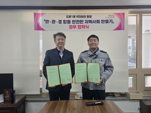 [½Åµ¿¾Æ¹æ¼Û µµºÀ±¸=À̽ŵ¿±âÀÚ] ¼­¿ï µµºÀ±¸ µµºÀ1µ¿ÀÌ Áö³­ 3¿ù 12ÀÏ µµºÀ1ÆÄÃâ¼Ò¿Í ¡®µµºÀ1µ¿ ¾àÀÚ¿ÍÀÇ µ¿Çà ¹Î¡¤°ü¡¤°æ ÇÕµ¿ ¾ÈÀüÇÑ Áö¿ª»çȸ ¸¸µé±â¡¯ »ç¾÷ ÃßÁøÀ» À§ÇÑ ¾÷¹«Çù¾àÀ» ¸Î¾ú´Ù. µµºÀ1µ¿Àº 2023³âºÎÅÍ Çù¾àÀ» ¸Î°í µµºÀ1µ¿ Á÷´É´Üü, µµºÀ1ÆÄÃâ¼Ò¿Í ¡¦