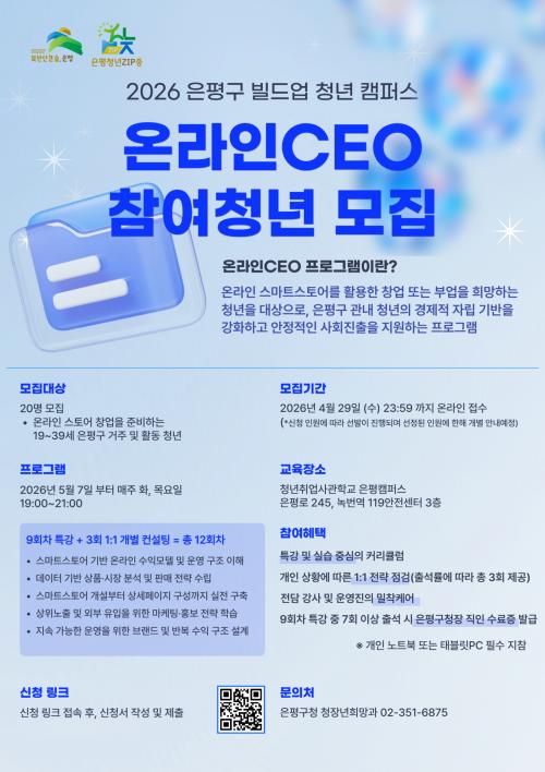 ÀºÆò±¸, û³â ´ë»ó ¡®¿Â¶óÀÎCEO¡¯ ÇÁ·Î±×·¥ ¿î¿µ¡¦ ¿Â¶óÀÎ ½ºÅä¾î Áغñ Áö¿ø