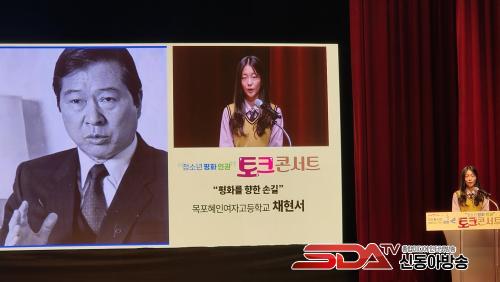 äÇö¼ (¸ñÆ÷ÇýÀο©°í 1³â) ÇлýÀº Áö³ 5ÀÏ ¸ñÆ÷¹®È¿¹¼úȸ°ü¿¡¼ ¿¸° ¡®±è´ëÁß 100³â ÆòÈÆä½ºÆ¼¹ú¡¯ÀÇ Ã»¼Ò³â ÆòÈ‧À뱂 ÅäÅ©ÄܼƮ ¹ßÇ¥ÀÚ·Î ³ª¼ ÀÌ °°Àº Æ÷ºÎ¸¦ ¹àÇû´Ù.