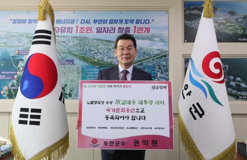 ¹Ú°¼ö ¸¶Æ÷±¸Ã»ÀåÀÇ Áö¸ñÀ» ¹ÞÀº ±ÇÀÍÇö ºÎ¾È±º¼ö´Â 縰Áö¿¡ µ¿ÂüÇÏ¸ç ¡°±è´ëÁß Àü ´ëÅë·ÉÀÇ µ¿±³µ¿ »çÀú´Â ¿ì¸® ¹ÎÁÖÈ ¿ª»ç¿¡ ÀÖ¾î Áß¿äÇÑ À¯»êÀÌÀÚ »ó¡À̸ç, Çѱ¹ ±ÙÇö´ë»ç¸¦ ¾Æ¿ì¸£´Â °ø°£.¡±À̶ó¸ç ¡°±è Àü ´ëÅë·ÉÀÌ °É¾î¿Â ±æ°ú ¹ÎÁÖÁÖÀǸ¦ ÇâÇÑ Çå½ÅÀº ±¹¹Î ¸ðµÎ°¡ ±â¾ïÇØ¾ß ÇÒ °¡Ä¡°¡ ÀÖ´Ù. Èļյ鿡°Ô ÀÌ·¯ÇÑ ¿ª»ç¸¦ ¹°·ÁÁÙ ¼ö ÀÖµµ·Ï ±¹°¡µî·Ï¹®ÈÀ¯»êÀ¸·Î ÁöÁ¤µÇ¾î º¸Á¸µÇ±â¸¦ ¹Ù¶õ´Ù¡±°í È£¼ÒÇß´Ù.