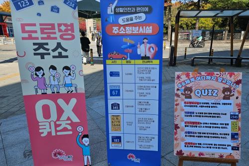 À̹ø Çà»ç´Â ÇÑ¿Á¸¶À»°ú ´ëÇзΠµî ½Ã¹ÎµéÀÇ ¿Õ·¡°¡ ÀæÀº °÷¿¡¼ ±¹°¡ÁöÁ¡¹øÈ£, »ç¹°ÁÖ¼Ò µî ÁÖ¼ÒÁ¤º¸½Ã¼³À» ½Ã¹Îµé¿¡°Ô ¾Ë¸®±â À§ÇØ ±¸»óµÆ´Ù. Çà»ç´Â ÇØ´ç Áö¿ªÀ» ¿À°¡´Â ½Ã¹ÎÀ» »ó´ë·Î OXÄûÁ ÁøÇàÇØ Á¤´äÀÚ¿¡°Ô ¼ÒÁ¤ÀÇ »óǰÀ» Àü´ÞÇÏ´Â ¹æ½ÄÀ¸·Î ÁøÇàµÆ´Ù.