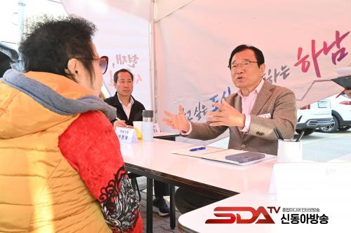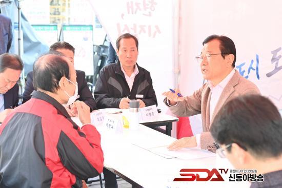 ÀÌÇöÀç Çϳ²½ÃÀåÀÌ 13ÀÏ ¿øµµ½ÉÀÎ ½ÅÀ嵿¿¡¼­ ¿­¸° Á¦13ȸ À̵¿½ÃÀå½Ç¿¡¼­ ÁֹεéÀÇ ÀǰßÀ» µè°í, ÇØ°á¹æ¾È¿¡ ´ëÇØ ³íÀÇÇϰí ÀÖ´Ù.