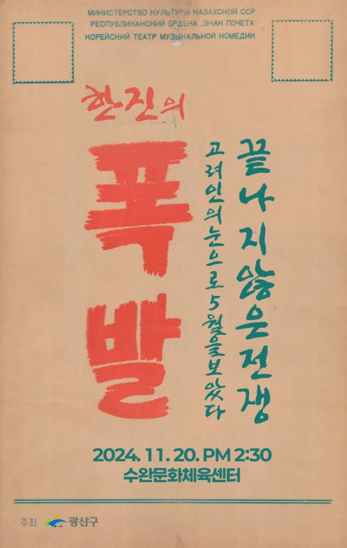 [½Åµ¿¾Æ¹æ¼Û=±èÀçÂù±âÀÚ] ±¤ÁÖ ±¤»ê±¸(±¸Ã»Àå ¹Úº´±Ô)´Â °í·ÁÀÎ ±ØÀÛ°¡ ¡®ÇÑÁø¡¯ÀÇ ÀÛǰÀ» ±â¹ÝÀ¸·Î ÇÑ ¿¬±Ø ¡®Æø¹ß¡¯ÀÌ 20ÀÏ ¼ö¿Ï¹®È­Ã¼À°¼¾ÅÍ¿¡¼­ ¼±º¸Àδٰí 19ÀÏ ¹àÇû´Ù.