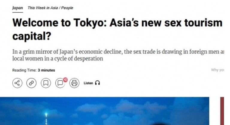SCMP´Â "ÀϺ» °æÁ¦ ȣȲ±â ¶§´Â ÀϺ» ³²¼ºÀÌ °¡³­ÇÑ ³ª¶óÀÇ ¿©¼ºÀÌ Á¦°øÇÏ´Â ±ÝÁöµÈ Äè¶ôÀ» À§ÇØ ÇØ¿Ü·Î ¶°³µÁö¸¸ Áö±ÝÀº »óȲÀÌ ¿ªÀüµÆ´Ù. ¿£È­ ¾à¼¼¿Í ÀϺ»ÀÇ ºó°ï Áõ°¡·Î ÀÎÇØ ¿Ü±¹ÀÎ ³²¼ºÀÌ µµÄì·Î '¼º °ü±¤'À» ¿À°í ÀÖ´Ù"°í ÀüÇß´Ù.