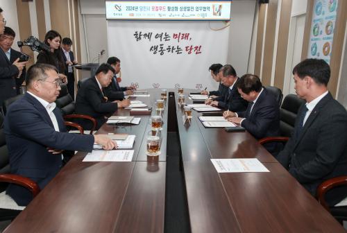 À̳¯ Çù¾à½Ä¿¡´Â ¿À¼ºÈ¯ ´çÁø½ÃÀå, °ûÁ¤Çö KGÄɹÌÄ® ´ëÇ¥ÀÌ»ç, ¹Ú¼ºÈñ KG½ºÆ¿ ´ëÇ¥ÀÌ»ç, ¹Ú½Â¼® ´çÁøÇسª·ç½ÒÁ¶ÇÕ°øµ¿»ç¾÷¹ýÀÎ ´ëÇ¥À̻簡 Âü¼®ÇÑ °¡¿îµ¥ ÇØ³ª·ç½Ò µî ´çÁø ³ó»ê¹° °ø±Þ Ȱ¼ºÈ­¸¦ À§ÇØ »óÈ£ Çù·ÂÀ» ´ÙÁüÇß´Ù.