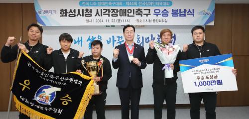 ȼº½Ã ½Ã°¢Àå¾ÖÀÎ Ã౸ÆÀÀº ¶Ù¾î³ °æ±â·Â°ú ÆÀ¿öÅ©¸¦ ¹ÙÅÁÀ¸·Î 2024³â ½Ã°¢Àå¾ÖÀÎÃ౸¸®±× 5°³ ´ëȸ¿¡¼ ¿ì½ÂÀ» ¼®±ÇÇϸç, Àå¾Ö¸¦ ±Øº¹ÇÏ°í ºÒ°¡´É¿¡ µµÀüÇÑ ÆÀÀ¸·Î ÁÖ¸ñ¹Þ°í ÀÖ´Ù.