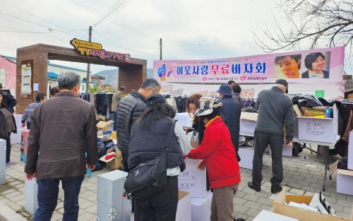 ¿ÀÈÄ 1½ÃºÎÅÍ º´¿µ½ÃÀå ÀÔ±¸¿¡¼ ¿¸° ¡®ÀÌ¿ô »ç¶û ¹«·á ¹ÙÀÚȸ¡¯´Â ¼¿ï °³²¿¡ ÀÖ´Â ¡®»ç¶ûÀÇ ±³È¸¡¯¿¡¼ ÈÄ¿ø¹ÞÀº ¹°Ç°µé·Î ä¿öÁ³´Ù. ¹ÙÀÚȸ´Â ´Ü¼øÈ÷ ¹°Ç°À» Àü´ÞÇÏ´Â µ¥ ±×Ä¡Áö ¾Ê°í ÁֹεéÀÌ ¼·Î ¹°°ÇÀ» ÃßõÇϰí À̾߱⸦ ³ª´©´Â Áñ°Å¿î ¼ÒÅëÀÇ ÀåÀ¸·Î ¹ßÀüÇß´Ù.
