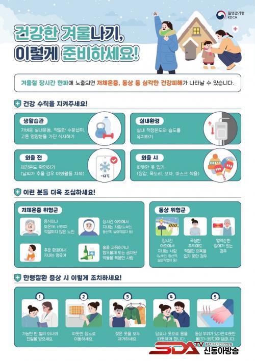 ÇÑ·©Áúȯ ¿¹¹æ¼öÄ¢À¸·Î´Â Ãß¿î ³¯¾¾¿¡ ¾ß¿ÜȰµ¿À» ÀÚÁ¦ÇÏ°í °¡º¿î ½Ç³» ¿îµ¿ ¹× ÀûÀýÇÑ ¼öºÐ¼·Ãë°¡ ÇÊ¿äÇÏ´Ù. ¶ÇÇÑ ¿ÜÃ⠽ÿ¡ ³»º¹À̳ª ¾ãÀº ¿ÊÀ» ¿©·¯ ¹ú °ãÃÄ ÀÔ¾î ¸öÀ» µû¶æÇÏ°Ô ÇÏ°í ½Ç³» ÀûÁ¤¿Âµµ¿Í ½ÀµµÀ¯Áö ¹× ü°¨¿Âµµ¸¦ È®ÀÎÇÏ´Â °ÍÀÌ Áß¿äÇÏ´Ù.