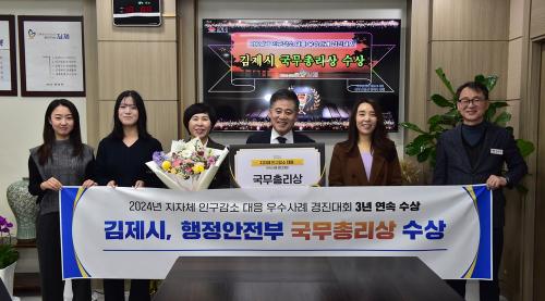 Á¤¼ºÁÖ ±èÁ¦½ÃÀåÀº "À̹ø ±¹¹«ÃѸ®»ó ¼ö»óÀº Áö¿ª À¯ÈÞ ÀÚ¿øÀ» Ȱ¿ëÇÑ Çõ½ÅÀûÀ̰í Áö¼Ó °¡´ÉÇÑ Á¤Ã¥ÀÌ ÀÎÁ¤¹ÞÀº °á°ú"¶ó¸ç, "¾ÕÀ¸·Îµµ Á¤ÁÖ Àα¸ ¿©°Ç °³¼±°ú »ýȰÀα¸ À¯ÀÔÀ» À§ÇÑ ´Ù¾çÇÑ »ç¾÷À» Áö¼ÓÀûÀ¸·Î ÃßÁøÇÏ¿© Áö¿ª¿¡ Ȱ·ÂÀ» ´õÇϰڴÙ"°í ¸»Çß´Ù.