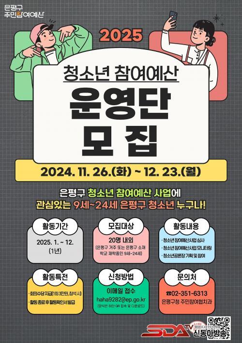 ¡®Ã»¼Ò³â Âü¿©¿¹»ê ¿î¿µ´Ü¡¯Àº Çб³, û¼Ò³â±â°ü, û¼Ò³âÂü¿©±â±¸ Ãßõ°ú °ø°³¸ðÁýÀ» ÅëÇØ 20¸í À̳»·Î ±¸¼ºµÉ ¿¹Á¤ÀÌ´Ù.