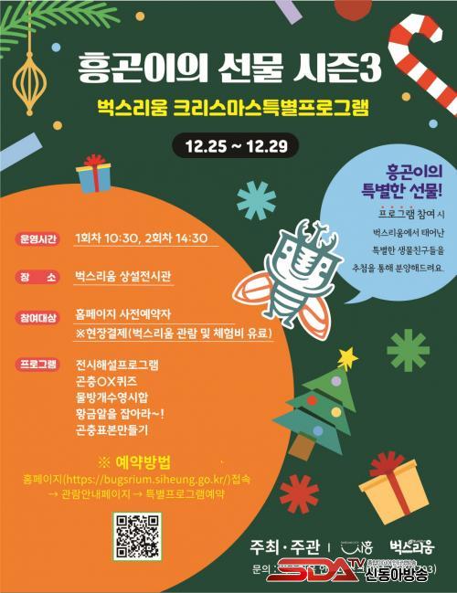 ¡®Èï°ïÀÌÀÇ ¼±¹° ½ÃÁð3¡¯ ÇÁ·Î±×·¥Àº ¸ÅÀÏ ¿ÀÀü 10½Ã 30ºÐ, ¿ÀÈÄ 2½Ã 30ºÐ¿¡ 2ȸ ÁøÇàµÇ¸ç, °ïÃæ Ç¥º» ¸¸µé±â, °ïÃæ ¿À¿¢½º(OX) ÄûÁî, ¸êÁ¾À§±â °ïÃæ »ýÅ Àü½Ã µî ´Ù¾çÇÑ Àü½Ã¿Í üÇè À̺¥Æ®°¡ ÆîÃÄÁø´Ù.