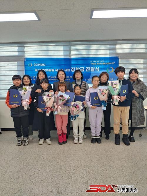 »ç´Ü¹ýÀÎ Çѱ¹Ã»¼Ò³â¹®ÈÀ°¼ºÈ¸ ±è°æ¼± ÀÌ»çÀåÀº ´ÙÇÔ²²µ¹º½¼¾ÅÍÀÇ ¸ð¹ü ¾Æµ¿ 6¸í¿¡°Ô °³º°Áõ¼¿Í ÇÔ²² ÀåÇбÝÀ» Àü´ÞÇß´Ù.