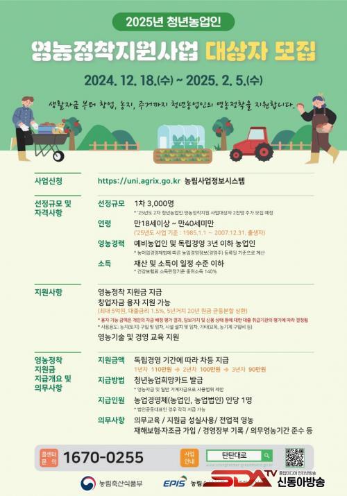 ¡®Ã»³â ³ó¾÷ÀÎ ¿µ³ó Á¤Âø Áö¿ø »ç¾÷¡¯Àº ÃÖ´ë 3³â°£ ¿ù 90¸¸ ¿ø¿¡¼ ÃÖ´ë 110¸¸ ¿øÀÇ ¿µ³ó Á¤Âø Áö¿ø±ÝÀ» Áö±ÞÇϰí, Èİè³ó¾÷°æ¿µÀÎÀÇ À°¼º ÀÚ±ÝÀ» ¿¬°è Áö¿øÇÏ´Â °ÍÀÌ´Ù.