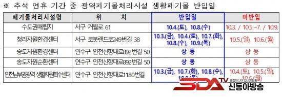 ÀÎõ½Ã´Â ¿¬ÈÞ ±â°£ »ýȰ¾²·¹±â Àûü·Î ÀÎÇÑ ½Ã¹Î ºÒÆíÀ» ÃÖ¼ÒÈÇϱâ À§ÇØ ±º¡¤±¸¿¡¼ ¹ÝÀÔÇÏ´Â »ýȰ¾²·¹±â ±¤¿ªÆó±â¹°Ã³¸®½Ã¼³ ¹ÝÀÔ ÀÏÁ¤À» º°µµ·Î ÁöÁ¤ÇÏ¿© ¿î¿µÇÑ´Ù.