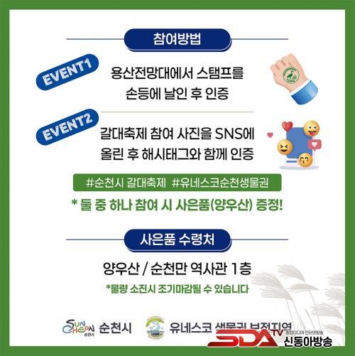µÎ ¹øÂ°´Â ¼øÃµ¸¸°¥´ëÃàÁ¦ ÇöÀå¿¡¼ ÃÔ¿µÇÑ »çÁøÀ» #¼øÃµ¸¸°¥´ëÃàÁ¦, #À¯³×½ºÄÚ¼øÃµ»ý¹°±Ç µîÀÇ ÇØ½ÃÅÂ±×¿Í ÇÔ²² °³ÀÎ SNS¿¡ °Ô½Ã ÈÄ ¼øÃµ¸¸ ¿ª»ç°ü¿¡¼ ÀÎÁõÇÏ¸é µÈ´Ù.