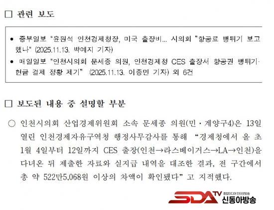 ¢¡ ¶ÇÇÑ, ÀÎõ½Ã¿¡¼ Áö³ 5¿ù ½Ç½ÃÇÑ ÀÚü °¨»ç¿¡¼ °øÀûÀÎ Á¡°ËÀ» ¹Þ¾Ò°í, ¹®¼¼Á¾ ÀÇ¿øÀÌ Á¦±âÇÑ ºÎºÐ¿¡ ´ëÇÑ °¨»çÁöÀûÀº ¾ø¾úÀ½. ÀÎõ°æÁ¦Ã»Àº °ø¹«±¹¿ÜÃâÀå ±ÔÁ¤À» ÁؼöÇÏ¿© °èȹ¼ö¸³°ú ¿¹»êÀý°¨ ¹æ¾ÈÀ» ¸¶·ÃÇÏ¿© ¾÷¹«¸¦ ÃßÁøÁß¿¡ ÀÖÀ½.