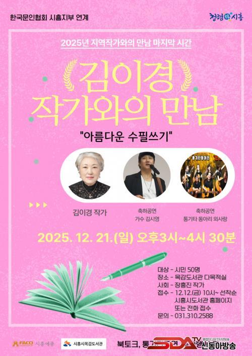 [½Åµ¿¾Æ¹æ¼Û ½ÃÈï½Ã=À̽ŵ¿±âÀÚ] ½ÃÈï½Ã¸ñ°¨µµ¼­°üÀº Áö¿ª ¹®ÇРȰ¼ºÈ­¿Í ½Ã¹ÎÀÇ ±Û¾²±â °æÇè È®´ë¸¦ À§ÇØ ¿À´Â 12¿ù 21ÀÏ ¿ÀÈÄ 3½ÃºÎÅÍ 4½Ã 30ºÐ±îÁö ¡®±èÀ̰æ Áö¿ªÀÛ°¡¿ÍÀÇ ¸¸³²¡¯À» ¿¬´Ù. ¿ÃÇØ·Î 4¹øÂ°¸¦ ¸Â´Â À̹ø Ư°­Àº Áö¿ª âÀÛÀÚ¿Í ½Ã¹ÎÀÌ Á÷Á¢ ±³·ùÇÒ ¼ö ÀÖ´Â ÀåÀ» ¸¶·ÃÇϰíÀÚ, Çѱ¹¹®ÀÎÇùȸ ½ÃÈïÁöºÎ¿Í ¿¬°èÇØ ÁøÇàµÇ´Â ¸ñ°¨µµ¼­°üÀÇ ´ëÇ¥ ¹®ÇÐ ÇÁ·Î±×·¥ÀÌ´Ù.