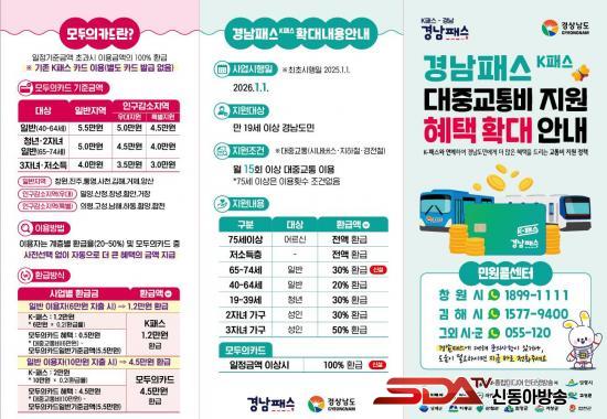 ¡®K-ÆÐ½º(°æ³²ÆÐ½º)¡¯´Â 19¼¼ ÀÌ»ó ½Ã¹ÎÀ» ´ë»óÀ¸·Î, ¿ù 15ȸ ÀÌ»ó ´ëÁß±³ÅëÀ» ÀÌ¿ëÇϸé ÀÌ¿ë ½ÇÀû¿¡ µû¶ó ±³Åëºñ¸¦ ȯ±Þ¹ÞÀ» ¼ö ÀÖ´Â Á¦µµÀ̸ç, 75¼¼ ÀÌ»ó ¾î¸£½ÅÀº ÀÌ¿ë Ƚ¼ö¿¡ Á¦ÇÑ ¾øÀÌ ÇýÅÃÀ» ¹ÞÀ» ¼ö ÀÖ´Ù.