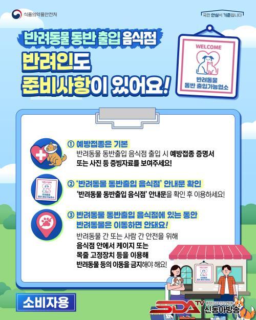 ¡ãÃâÀÔ¹®¿¡ ¹Ý·Áµ¿¹° µ¿¹Ý °¡´É ¿µ¾÷ÀåÀÓÀ» Ç¥½ÃÇØ¾ß Çϸç, ¿¹¹æÁ¢Á¾ ¿Ï·á ¹Ý·Áµ¿¹°¸¸ µ¿¹ÝÇÒ ¼ö ÀÖ´Ù. ¡ãÁ¶¸®Àå ¹× ½ÄÀç·á º¸°üâ°í µî ½Äǰ Ãë±Þ ½Ã¼³¿¡´Â ¹Ý·Áµ¿¹°ÀÌ ÃâÀÔÇÒ ¼ö ¾øµµ·Ï ĸ·À̳ª ¿ïŸ¸®¸¦ ¼³Ä¡ÇØ¾ß ÇÑ´Ù. ¡ã¹Ý·Áµ¿¹° ½Ä±â ±¸ºÐ, À½½ÄÀº ¶Ñ²±À̳ª µ¤°³¸¦ »ç¿ëÇØ¾ß ÇÑ´Ù. ¡ã¸ÅÀå ¾È¿¡¼ ¹Ý·Áµ¿¹°Àº Àü¿ë ÀÇÀÚ¡¤¿ì¸®(ÄÉÀÌÁö)¡¤¸ñÁÙÀ» »ç¿ëÇØ À̵¿À» ÅëÁ¦ÇØ¾ß ÇÑ´Ù.