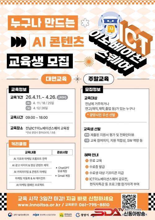 [½Åµ¿¾Æ¹æ¼Û Àü³²±¤¾ç=¹Ú±¤¿Á±âÀÚ] ±¤¾ç½Ã´Â 3¿ù 16ÀϺÎÅÍ 4¿ù 8ÀϱîÁö ¡®´©±¸³ª ¸¸µå´Â AI ÄÜÅÙÃ÷¡¯ ±³À°»ýÀ» ¸ðÁýÇÑ´Ù°í ¹àÇû´Ù.