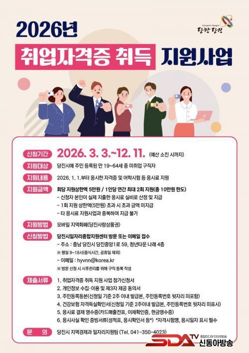 [½Åµ¿¾Æ¹æ¼Û=ÀÌÀçö±âÀÚ] ´çÁø½Ã´Â ½Ã¹ÎµéÀÇ Ãë¾÷ ¿ª·® °­È­¸¦ À§ÇØ ¡®2026³â Ãë¾÷ ÀÚ°ÝÁõ Ãëµæ Áö¿ø»ç¾÷¡¯À» ÃßÁøÇϰí Áö¿ø ´ë»óÀÚ¸¦ ¸ðÁýÇÑ´Ù°í 20ÀÏ ¹àÇû´Ù.