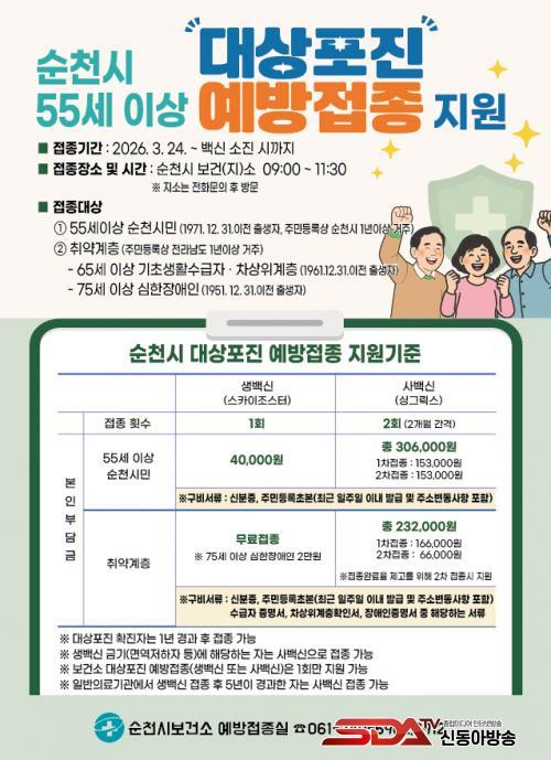 ¼øÃµ½Ã, 55¼¼ ÀÌ»ó ´ë»óÆ÷Áø ¿¹¹æÁ¢Á¾ »ç¹é½Å È®´ë ½ÃÇà