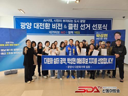 ´Ù¹®È°¡Á¤ ±¸¼º¿ø 10¿© ¸íÀº 29ÀÏ ¿ÀÈÄ ±¤¾ç½Ã ¼ÒÀç ¹Ú¼ºÇö ¿¹ºñÈĺ¸ ¼±°Å»ç¹«¼Ò¿¡¼ ÁöÁö ÀÔÀå¹®À» ¹ßÇ¥Çß´Ù.