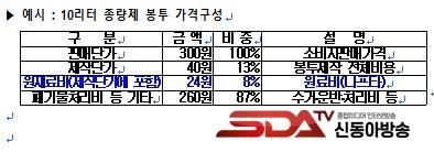 ÇöÀç 10¸®ÅÍ Á¾·®Á¦ ºÀÅõÀÇ °¡°Ý ºñÁßÀº Á¦À۴ܰ¡´Â 13% ¼öÁØÀ̸ç, ¿øÀç·áºñ´Â 8%¿¡ ºÒ°úÇÏ´Ù. µû¶ó¼ ¼ö°Å¿Í ¿î¹Ý, 󸮺ñ µî Æó±â¹° ó¸®¿Í ±âŸ ºñ¿ëÀÌ 87%¿¡ ´ÞÇϹǷΠ¿øÀç·áºñ »ó½ÂÀÌ °¡°Ý »ó½Â¿¡ Å« ¿µÇâÀ» ¹ÌÄ¡Áö ¾Ê´Â´Ù´Â °Ô ÁøÁÖ½ÃÀÇ ¼³¸íÀÌ´Ù.
