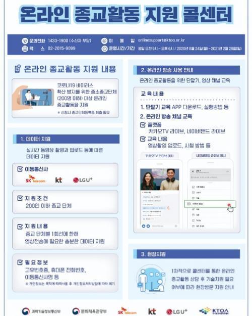 ¹®Ã¼ºÎ¿Í °ú±âÁ¤ÅëºÎ´Â ¡®ºñ´ë¸é ¿Â¶óÀÎ Á¾±³È°µ¿ Áö¿ø »ç¾÷¡¯À» 2°³¿ù ¿¬ÀåÇÏ¸é¼ Á¾±³È°µ¿ÀÇ ºñ´ë¸é Àüȯµµ ´õ¿í ÃËÁøÇϱâ À§ÇØ µ¥ÀÌÅÍ Áö¿øÀ» ±âÁ¸ ¿ù 50±â°¡¹ÙÀÌÆ®(GB)¿¡¼ 100±â°¡¹ÙÀÌÆ®·Î »óÇâÇÑ´Ù. 5¼¼´ë À̵¿Åë½Å(5G) µîÀ» ÅëÇØ °íÈÁú(´ë¿ë·®) ¿µ»óÀ» Àü¼ÛÇÏ´õ¶óµµ µ¥ÀÌÅ͸¦ ÃæºÐÈ÷ »ç¿ëÇÒ ¼ö ÀÖµµ·Ï Áö¿øÀ» È®´ëÇß´Ù.