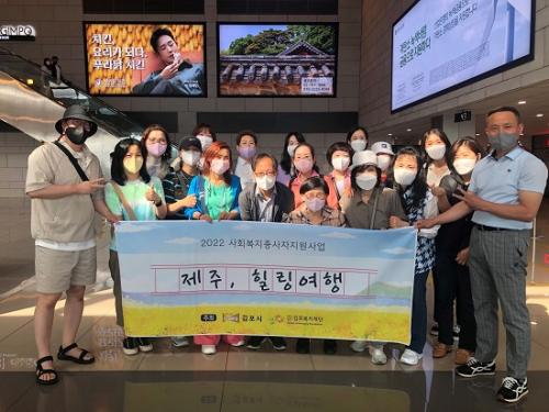 6¿ù 8ÀÏ(¼ö) 8½Ã 30ºÐ ±èÆ÷°øÇ׿¡¼ Á¦ÁÖ Èú¸µ¿©Çà ¹ß´ë½ÄÀ» ½ÃÀÛÀ¸·Î Èú¸µ¿©Çà»ç¾÷ÀÌ ÁøÇàµÇ¾úÀ¸¸ç, À̹ø Èú¸µ¿©ÇàÀº Àå½Ã°£ Áö¼ÓµÈ Äڷγª19·Î ÀÎÇØ ¼ÒÁøµÇ¾úÀ» »çȸº¹ÁöÁ¾»çÀÚ¿¡°Ô Èú¸µÀÇ ½Ã°£À» Á¦°øÇÏ¿© Á¾»çÀÚ ¼ÒÁø¿¹¹æ°ú »çȸº¹Áö ¼ö¿äÀÚÀÇ ¼ºñ½º ¸¸Á·°ú »îÀÇ Áú Çâ»ó¿¡ ±â¿©ÇϰíÀÚ ±èÆ÷º¹ÁöÀç´Ü¿¡¼ ÁøÇàÇÏ´Â »ç¾÷ÀÌ´Ù.