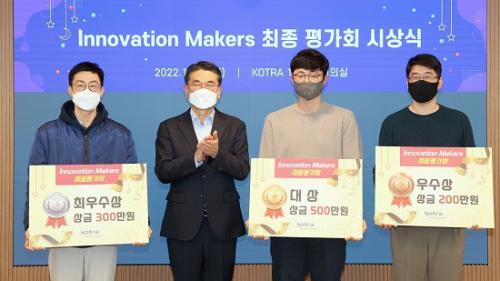 KOTRA´Â DX Çõ½ÅÀ» µµ¸ðÇϰí, Âü¿©ÇÏ´Â ½ºÅ¸Æ®¾÷¿¡ ÇØ¿Ü ÁøÃâ¿¡ ÇÊ¿äÇÑ ·¹ÆÛ·±½º¸¦ Á¦°øÇϰíÀÚ ¡®À̳뺣ÀÌ¼Ç ¸ÞÀÌÄ¿½º¡¯¸¦ Áö³ 8¿ùºÎÅÍ 4°³¿ù°£ Àü»çÀûÀ¸·Î ÃßÁøÇß´Ù. ÀÌ´Þ 20ÀÏ¿¡ °³ÃÖÇÑ ÃÖÁ¾Æò°¡È¸¿¡¼´Â °úÁ¦º° ¼º°ú¸¦ °øÀ¯Çϰí, ³»¿ÜºÎ ½É»çÀ§¿øÀÇ Æò°¡¸¦ ÅëÇØ ¼º°øÀûÀÎ ¼Ö·ç¼ÇÀ» Á¦½ÃÇÑ ¾¾º¥Æ¼Áö, ¾ØÅå, ½ºÄÜ µî 3°³»ç¸¦ ¿ì¼ö Çù¾÷ ½ºÅ¸Æ®¾÷À¸·Î ½Ã»óÇß´Ù.