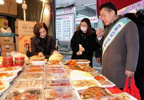 [½Åµ¿¾Æ¹æ¼Û °æÀÎ=Ãß°æ¹Î ±âÀÚ]ÀÌÀçÁØ ¼ö¿øÆ¯·Ê½ÃÀåÀÌ ¼³ ¸íÀýÀ» ¸Â¾Æ 13ÀÏ Á¤ÀÚ½ÃÀåÀ» ¹æ¹®ÇØ ÀüÅë½ÃÀå »óÀεéÀ» °Ý·ÁÇϰí, ½ÃÀå¿¡¼ ¸¸³ ½Ã¹Îµé¿¡°Ô »õÇØÀλ縦 Çß´Ù.