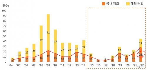 '22³â ±â´É¼º ³»¿ëº° ¿ø·á ÀÎÁ¤ °Ç¼ö´Â °üÀý°Ç°(8°Ç), üÁö¹æ°¨¼Ò‧ÇǺΰǰ(°¢ 4°Ç), ÀÎÁö±â´É °³¼±‧Ç÷Áß ÄÝ·¹½ºÅ×·Ñ °¨¼Ò(°¢ 3°Ç) ¼øÀ¸·Î ³ªÅ¸³µ°í ÃÖ±Ù 5³â°£ ¿ø·á ÀÎÁ¤ ½ÅûÇöȲÀº üÁö¹æ °¨¼Ò(44°Ç), ÇǺΰǰ(37°Ç), ¸é¿ª±â´É(26°Ç), °£ °Ç°(17°Ç), °»³â±â ¿©¼º°Ç°(15°Ç) ¼øÀ̾úÀ¸³ª, '22³â ½ÅûÇöȲ*Àº ±Ù·Â°³¼±(5°Ç), ±â¾ï·Â‧ÀÎÁö±â´É‧°»³â±â ³²¼º°Ç°(3°Ç) µîƯÁ¤ °èÃþ¿¡ µµ¿òÀ» ÁÙ ¼ö ÀÖ´Â ±â´É¼º¿¡ ´ëÇÑ ¿¬±¸°³¹ß¿¡ °ü½ÉÀÌ ³ô¾ÆÁö°í ÀÖ´Â °ÍÀ¸·Î º¸°íµÇ¾ú´Ù.