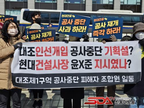 ´ë±â¾÷ Çö´ë°Ç¼³ÀÌ ÀÏÂïºÎÅÍ µ¶Á¡ÇÏ¿© Çö´ë°Ç¼³ÀÇ ¼ö ½Ê¾ï ¿ø ºÒ¹ý »ç¾÷ Àڱݴ뿩, 2014³â ÀÌ»ó Á¶ÇÕ »ç¹«½Ç ¹«»ó Á¦°ø, µ¿ÀǼ­, ¹ßÀǼ­ µî °¢Á¾ ¼­¸é ¡±¸ ¿ë¿ª¿ø ÅõÀÔ, ¼Ò¼Ûºñ¿ë ´ë³³ ¹× ³ú¹° Á¦°ø µî 2010³â ~ 2011³â Á¶ÇÕ¼³¸³ ´Ü°èºÎÅÍ ¹Ù¶÷ Àß ³¯ ¾ø¾ú´ø ´ëÁ¶1±¸¿ªÀº 2016³â ¹®Á¦ÀÇ A Á¶ÇÕÀå Çö Á¶ÇÕ ÁýÇàºÎ°¡ µé¾î¼­°í 2017³â ½Ã°ø»ç¸¦ ¼±Á¤ÇÏ¸ç »ç¾÷ÀÌ ÁøÃ´µÇ´Â µí ÇÏ¿´À¸³ª ÃÖ±Ù ÀüÀÓ Á¶ÇÕÀå A , ½Ã°ø»ç B ¿ÍÀÇ °ËÀº À¯Âø °ü°è°¡ Ç¥¸éÀ¸·Î ¿Ã¶ó¿À¸é¼­ ÇöÀç °ø»ç´Â ÁߴܵǾú°í, Á¶ÇÕ¿øµéÀº Å« È¥¶õ¿¡ ºüÁ® ÀÖ´Ù.
