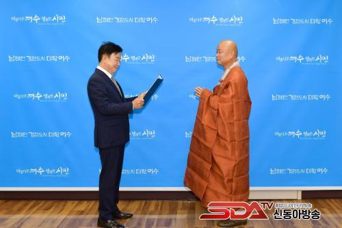 ½ÃÀå½Ç¿¡¼ ¿¸° Àü´Þ½Ä¿¡ Á¤±â¸í ½ÃÀå°ú ´Þ¸¶»ç ÁÖÁö µµÇؽº´ÔÀÌ Âü¼®ÇÑ °¡¿îµ¥, Á¤ ½ÃÀåÀº ´Þ¸¶»ç ¼ÒÀ庻ÀÇ ¹®ÈÀ¯»ê ÁöÁ¤À» ÃàÇÏÇϸç ÁöÁ¤¼¸¦ Á÷Á¢ Àü´ÞÇß´Ù.