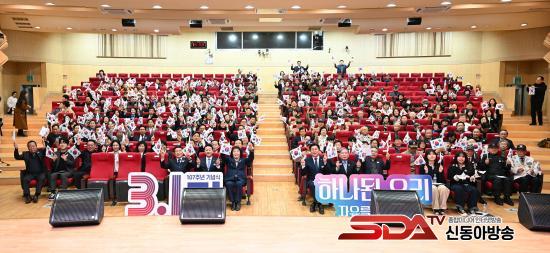 ±â³ä½ÄÀº ±â³ä¿µ»ó »ó¿µ°ú 3¡¤1¿îµ¿ °æ°úº¸°í¸¦ ÅëÇØ Áö¿ª µ¶¸³¿îµ¿ÀÇ ¿ª»çÀû Àǹ̸¦ µÇ¤´Â ½Ã°£À¸·Î ½ÃÀ۵ƴÙ. ÀÌ¾î µ¶¸³À¯°øÀÚ À¯Á· ´ëÇ¥¿Í ½ÃÈï½Ãû¼Ò³âÂü¿©À§¿øÈ¸ À§¿øµéÀÌ ÇÔ²² µ¶¸³¼±¾ð¼¸¦ ³¶µ¶ÇÏ¸ç ¼¼´ë¸¦ ³Ñ¾î °è½ÂµÇ´Â µ¶¸³Á¤½ÅÀÇ °¡Ä¡¸¦ µÇ»õ°å´Ù. ÀÌÈÄ 3¡¤1Àý ³ë·¡ °ø¿¬°ú ¸¸¼¼»ïâÀÌ À̾îÁ®, Âü¼®ÀÚµéÀº ¡®´ëÇѵ¶¸³ ¸¸¼¼¡¯¸¦ ¿ÜÄ¡¸ç Çϳª µÈ ¸¶À½À¸·Î ¼±¿µéÀÇ ¶æÀ» ±â·È´Ù.
