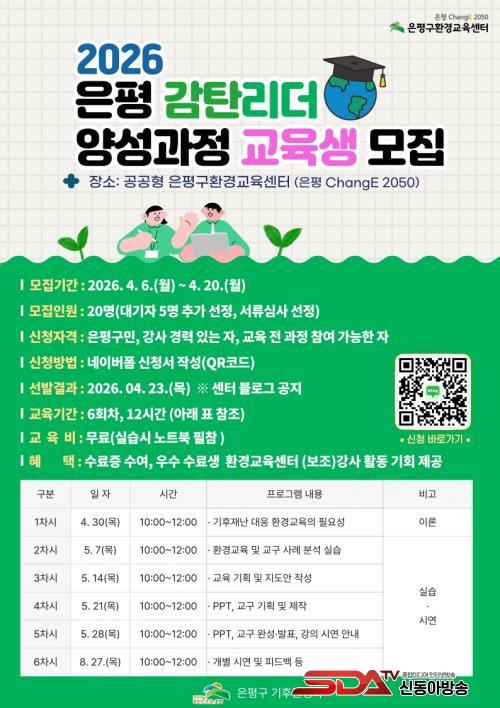 ±³À°Àº ¿À´Â 30ÀϺÎÅÍ 8¿ù 27ÀϱîÁö ÃÑ 6ȸÂ÷(12½Ã°£)·Î ÀºÆò±¸ ȯ°æ±³À°¼¾ÅÍ¿¡¼ ÁøÇàµÈ´Ù. ÁÖ¿ä ³»¿ëÀº ¡ã±âÈÄÀç³ ´ëÀÀ ȯ°æ±³À°ÀÇ Çʿ伺 ¡ãȯ°æ±³À° ¹× ±³±¸ »ç·Ê ºÐ¼® ½Ç½À ¡ã±³À° ±âȹ ¹× Áöµµ¾È ÀÛ¼º ¡ãÇÁ·¹Á¨Å×À̼Ç(PPT) ¹× ±³±¸ Á¦ÀÛ¡¤¹ßÇ¥ ¡ã°³º° ½Ã¿¬ ¹× Æò°¡ µîÀ¸·Î ±¸¼ºµÇ¾î ½Ç¹« ¿ª·®À» °ÈÇÏ´Â µ¥ ÁýÁßÇÑ´Ù.