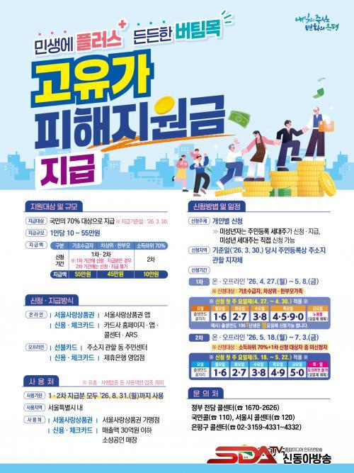»ç¿ë ±âÇÑÀº 2026³â 8¿ù 31ÀÏ 24½Ã±îÁö´Ù. ¼¿ï½Ã ³» ¸ÅÃâ¾× 30¾ï ¿ø ÀÌÇÏ ¼Ò»ó°øÀÎ ¸ÅÀå°ú ¼¿ï»ç¶û»óǰ±Ç °¡¸ÍÁ¡¿¡¼ »ç¿ëÇÒ ¼ö ÀÖ´Ù. ´Ù¸¸ À¯È»çÇà¾÷Á¾°ú ´ëÇü¸¶Æ®, ¹éÈÁ¡, ¿Â¶óÀÎ ÀüÀÚ»ó°Å·¡ µî¿¡¼´Â »ç¿ëÀÌ Á¦ÇѵȴÙ.