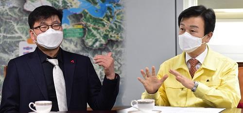 [½Åµ¿¾Æ¹æ¼Û=°­¿µÈÆ ±âÀÚ] ÁøÁÖ½Ã(½ÃÀå Á¶±ÔÀÏ)´Â Áö³­ 1¿ù 29ÀÏ Á¶±ÔÀÏ ÁøÁÖ½ÃÀå°ú ¹Îº´Âù ±¹¸³Áß¾Ó¹Ú¹°°üÀåÀÌ ±¹¸³ÁøÁÖ¹Ú¹°°ü ÀÌÀü °Ç¸³ÀÇ Â÷Áú ¾ø´Â ÃßÁøÀ» ³íÀÇÇß´Ù°í 31ÀÏ ¹àÇû´Ù. À̳¯ °£´ãȸ¿¡¼­ Á¶±ÔÀÏ ÁøÁÖ½ÃÀåÀº ¡°ÁøÁÖ¹Ú¹°°ü ÀÌÀü »ç¾÷Àº Áö¿ªÀÇ ¹®È­ ÀÎÇÁ¡¦