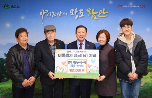 [½Åµ¿¾Æ¹æ¼Û ÇÔ¾È=À̽ŵ¿±âÀÚ]ÇԾȱºÀº 26ÀÏ ±ººÏ ¸Å±¸³îÀÌÀü¼öȸ(ȸÀå ¹Ú±âÇÐ)¿¡¼­ ¾î·Á¿î ÀÌ¿ôµ½±â ¼º±Ý 100¸¸ ¿øÀ» ±âŹÇß´Ù°í ¹àÇû´Ù. À̳¯ ±âŹ½Ä¿¡´Â Á¶±ÙÁ¦ ÇԾȱº¼ö¿Í ¹Ú±âÇРȸÀåÀ» ºñ·ÔÇÑ °ü°èÀÚµéÀÌ Âü¼®ÇßÀ¸¸ç, ±âŹµÈ ¼º±ÝÀº ±º³» ¾î·Á¿î °¡Á¤ÀÇ µû¶æÇÑ¡¦