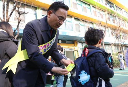 [½Åµ¿¾Æ¹æ¼Û °­³²=À̽ŵ¿±âÀÚ]°­³²±¸°¡ »õ Çб⸦ ¸Â¾Æ ¾ÈÀüÇÑ µîÇϱ·±æ Á¶¼ºÀ» À§ÇÑ ¹Î¡¤°ü¡¤°æ ÇÕµ¿ ±³Åë¾ÈÀü Ä·ÆäÀÎÀ» ÃßÁøÇÏ´Â °¡¿îµ¥, 21ÀÏ ¿ÀÀü 8½Ã 30ºÐ ¾ðºÏÃÊ ¾Õ¿¡¼­ Ä·ÆäÀÎÀ» ½Ç½ÃÇß´Ù. ÀÌ Ä·ÆäÀÎÀº ±³Åë¾ÈÀü ÁõÁøÀ» À§ÇØ Áö³­ÇØ 10¿ù ¼ÕÀ» ÀâÀº 5°³ ±â°ü¡¦