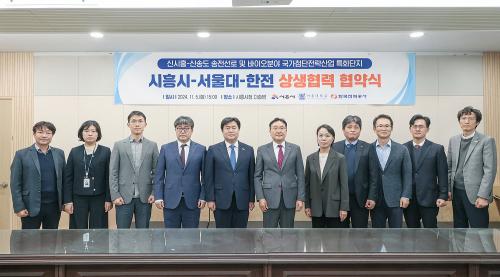 [½Åµ¿¾Æ¹æ¼Û ½ÃÈï½Ã=À̽ŵ¿±âÀÚ] ½ÃÈï½Ã°¡ 5ÀÏ ½Ãû ´Ù½½¹æ¿¡¼­ ¼­¿ï´ëÇб³, Çѱ¹Àü·Â°ø»ç¿Í ÇÔ²² ¡®½Å½ÃÈï-½Å¼Ûµµ ¼ÛÀü¼±·Î ¹× ¹ÙÀÌ¿ÀºÐ¾ß ±¹°¡Ã·´ÜÀü·«»ê¾÷ Ưȭ´ÜÁö¡¯ °ü·Ã »ó»ý Çù¾àÀ» ü°áÇß´Ù. À̹ø Çù¾àÀº ¡¸½Å½ÃÈï-½Å¼Ûµµ ¼ÛÀü¼±·Î¡¹ÀÇ ¿øÈ°ÇÑ »ç¾÷ÃßÁø°ú ¡¸¡¦