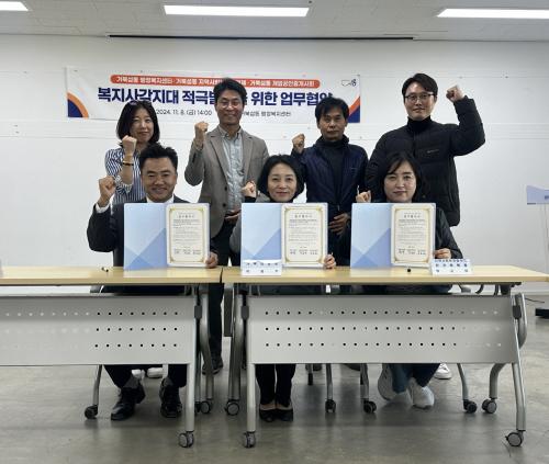 [½Åµ¿¾Æ¹æ¼Û ½ÃÈï½Ã=À̽ŵ¿±âÀÚ] ½ÃÈï½Ã °ÅºÏ¼¶µ¿ ÇàÁ¤º¹Áö¼¾ÅÍ¿Í Áö¿ª»çȸº¸ÀåÇùÀÇü(¹Î°£À§¿øÀå ¹Ú¼ø¿©)´Â Áö³­ 8ÀÏ °ÅºÏ¼¶µ¿ °³¾÷°øÀÎÁß°³»çȸ¿Í º¹Áö »ç°¢Áö´ë Àû±Ø ¹ß±¼À» À§ÇÑ ¾÷¹«Çù¾àÀ» ü°áÇß´Ù. °ÅºÏ¼¶µ¿ °³¾÷°øÀÎÁß°³»çȸ´Â 7¸íÀÇ °øÀÎÁß°³¾÷¼Ò(´ç±ÙºÎµ¿»ê¡¦