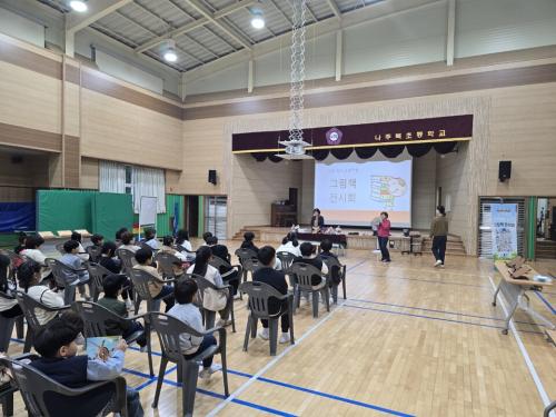 [½Åµ¿¾Æ¹æ¼Û ³ªÁÖ½Ã=À̽ŵ¿±âÀÚ] 11¿ù 12ÀÏ, ³ªÁÖºÏÃʵîÇб³ÀÇ Ã»µ¿°ü¿¡¼­ Ưº°ÇÑ Àü½Ãȸ°¡ ¿­·È´Ù. À̹ø Àü½Ãȸ´Â ¡®³ªµµÀÛ°¡ ÇÁ·ÎÁ§Æ®¡¯¸¦ ÅëÇØ 3~4Çгâ ÇлýµéÀÌ Á÷Á¢ ¾´ Ã¥À» ¼±º¸ÀÌ´Â ÀÚ¸®¿´´Ù. ÀÌ ÇÁ·ÎÁ§Æ®´Â ÇлýµéÀÌ ÀڽŸ¸ÀÇ À̾߱⸦ ±Û°ú ±×¸²À¸·Î Ç¥ÇöÇØ Ã¥¡¦